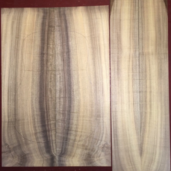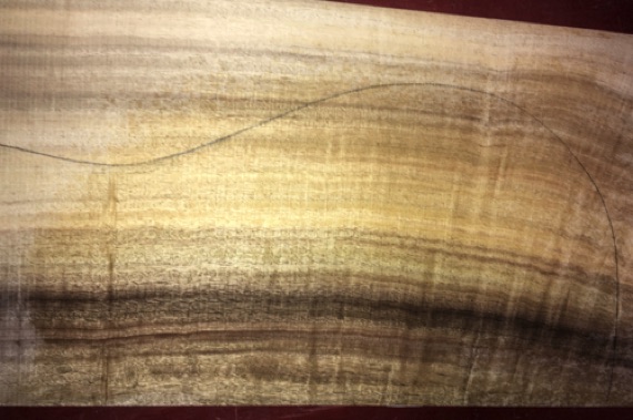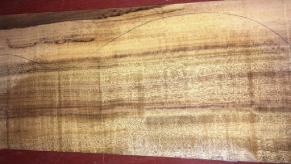 Air dried since 2002, premium tight fiddleback, 16" D pattern shown; vertical grain.