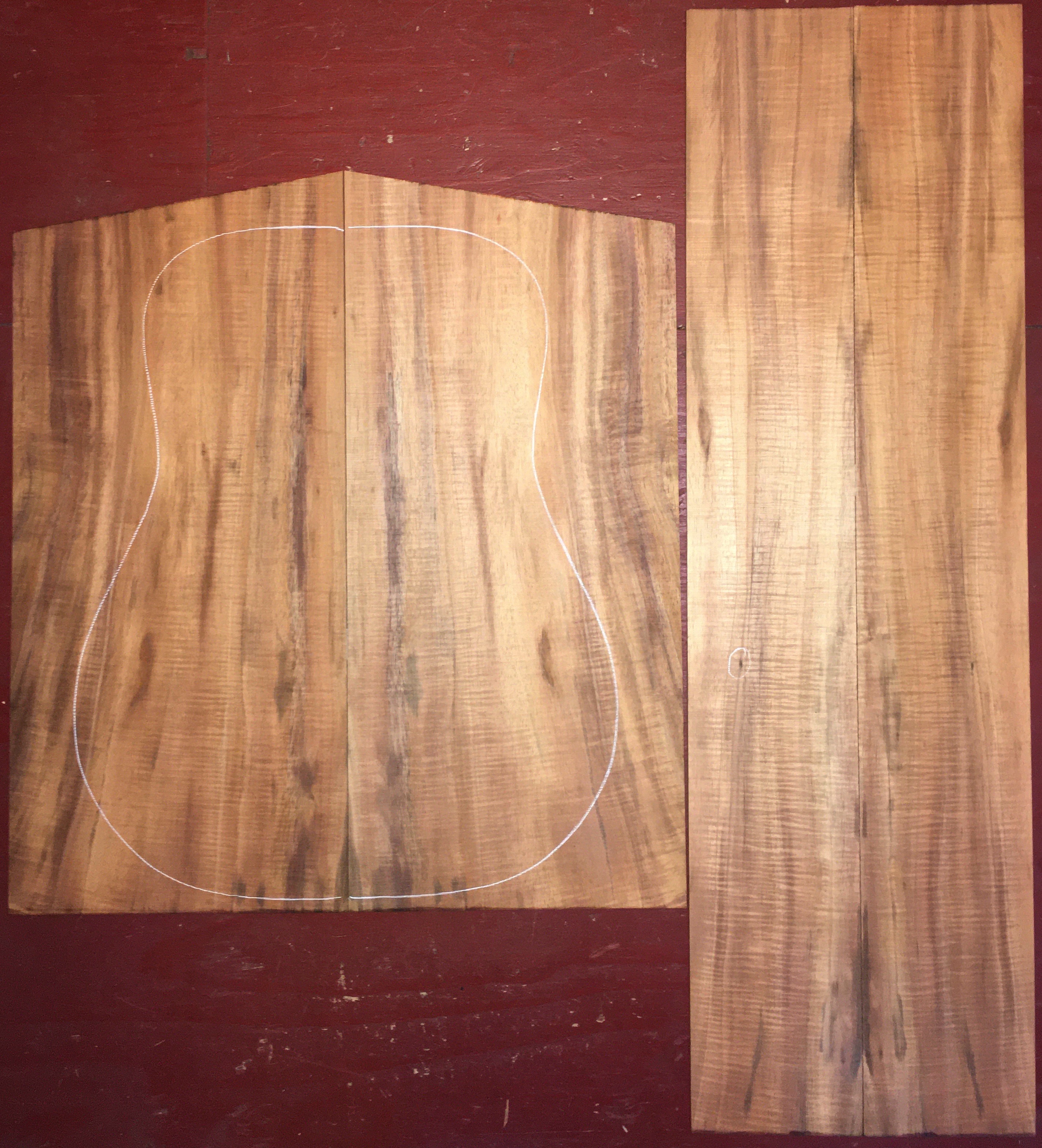 Air dried since 2017, 16" dred pattern shown, straight & vertical grain, full curl. Will make handsome guitar.