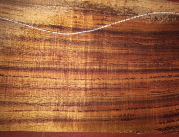 Tight, shallow knot on inside face of one side (not on show face). Spot of whorl figure on sides. Inquire for closeups.