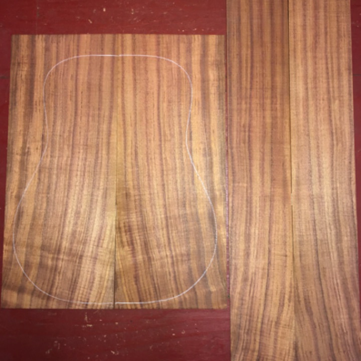 Back plates show an easy fit for OM; a standard dreadnought pattern is tight but doable. 3A curl on back, 2A+ curl on sides.