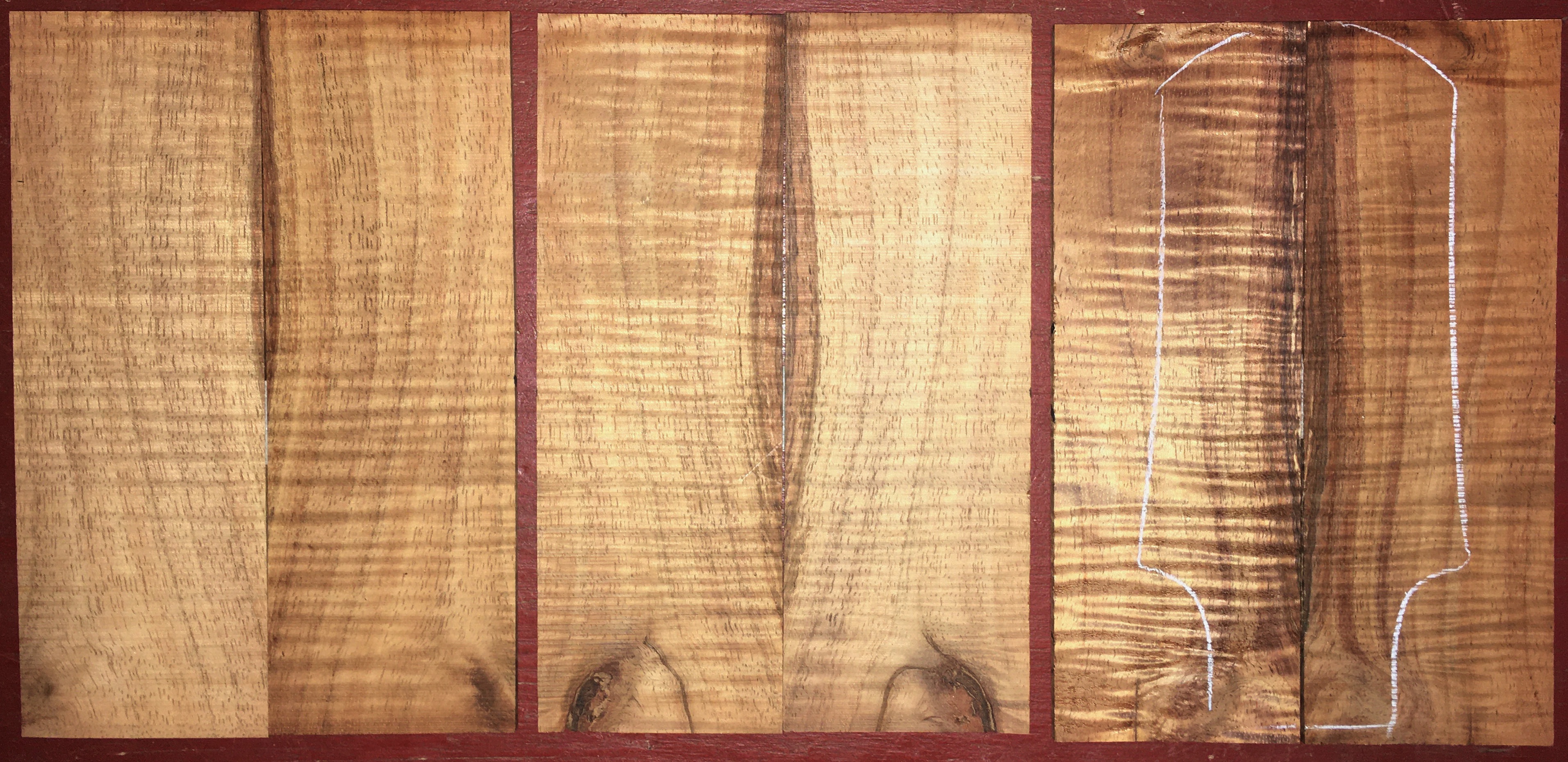 We have plenty of bookmatched koa headplates. These are rough-sawn plates, with minimum dimensions of 7-1/2" long, 1-3/4" wide (3-1/2" bookmatched), and .100" thick. Wider bookmatches and one-piece headplates available on request. Consider adding some to your next order.